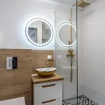 توفّر هذه الشقة أيضًا خيارات ترفيهية متنوعة مثل التلفزيون والتلفزيون بشاشة مسطحة مع قنوات فضائية لاسترخاء الضيوف. يحتوي مكان الإقامة على المرحاض المنفصل والدوش لتعزيز راحتك. علاوة على ذلك، هناك مجفف الشعر وملاءات الحمام والمناشف أيضًا.